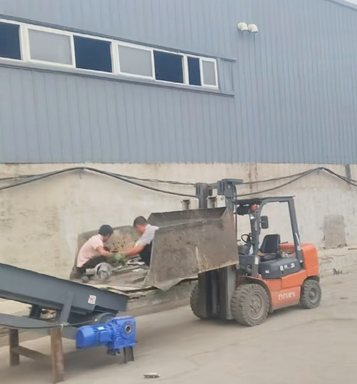 路友 110 型廢鋁破碎機已完成安裝,目前正進行人工投料試機。