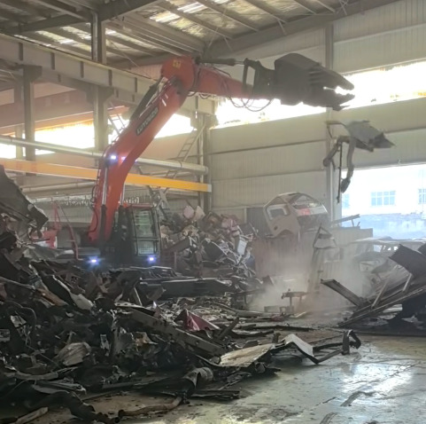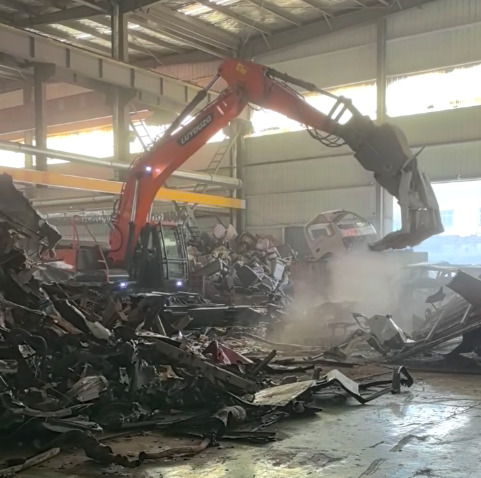 路友重工拆車(chē)機(jī)正在對(duì)汽車(chē)架進(jìn)行拆解