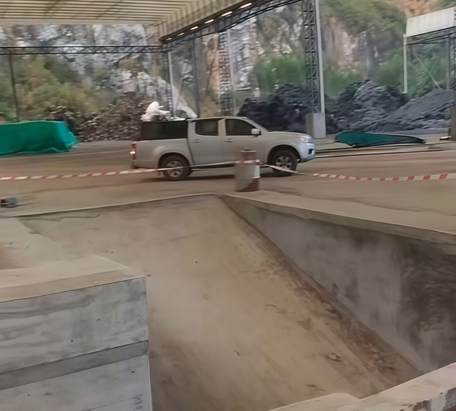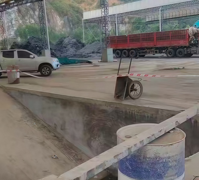 場地符合開展安裝工作,正在進(jìn)行路友破碎機(jī)卸車工作。