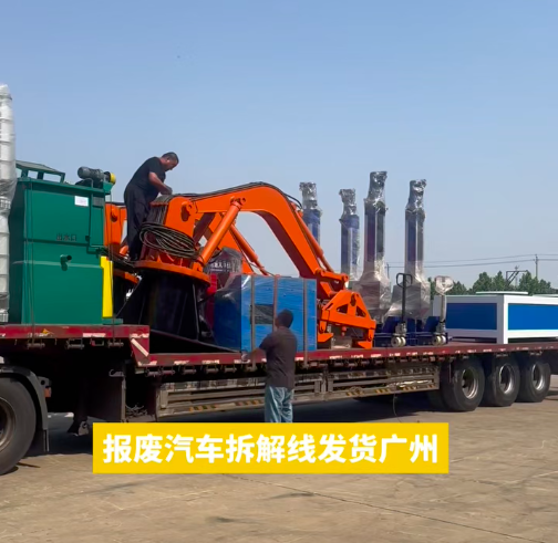 兩輛半掛車擔(dān)起一條汽車拆解線